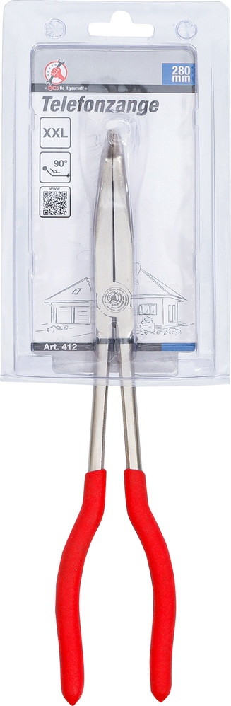 Kliešte telefónne, zahnuté, extra dlhé, zahnuté 90°, 280 mm, BGS 412
