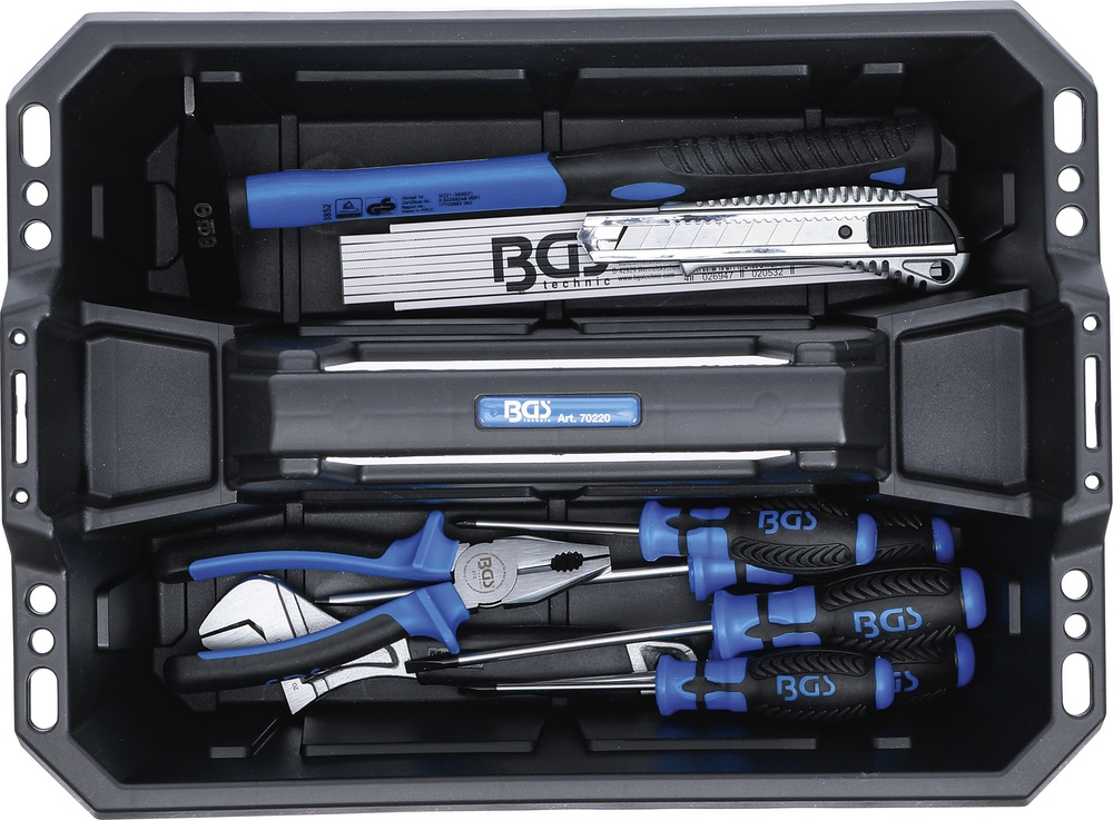 Box na náradie, prenosný, vystužený plast, s náradím, 11 dielov, BGS 70225