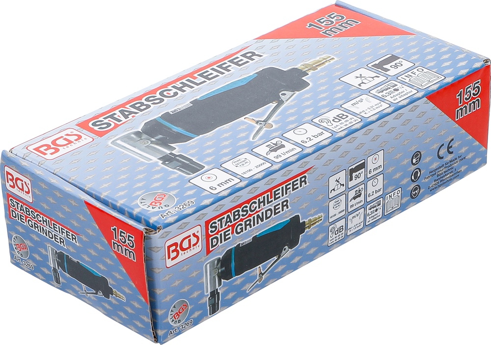 Brúska priama, pneumatická, zahnutá 90°, 155 mm, BGS 3269