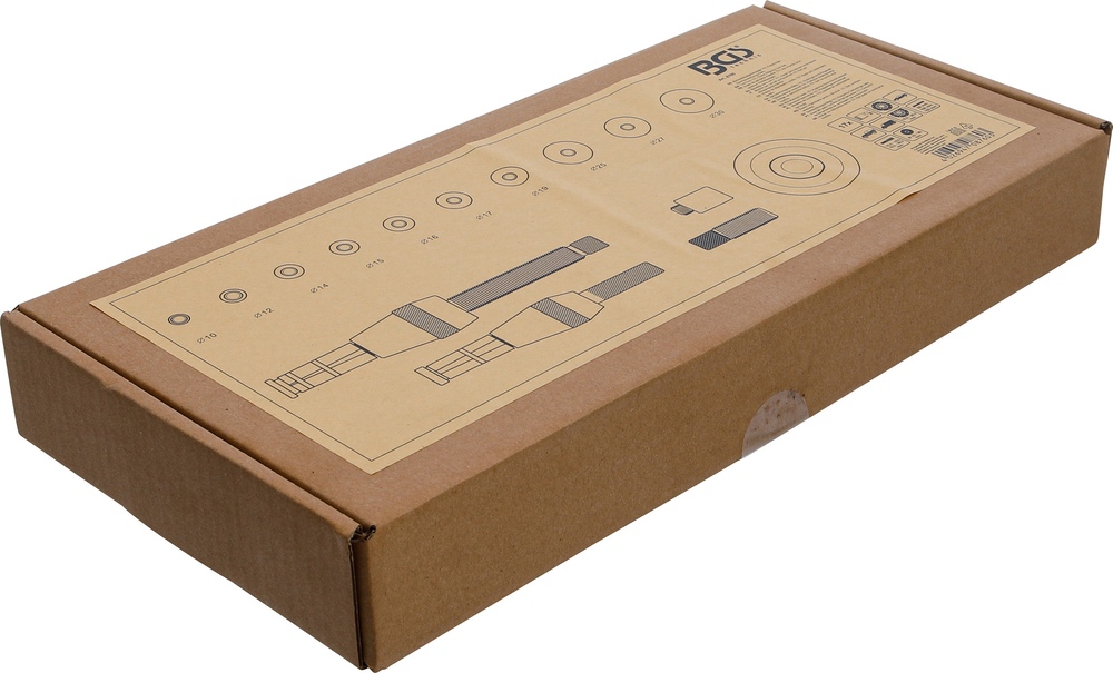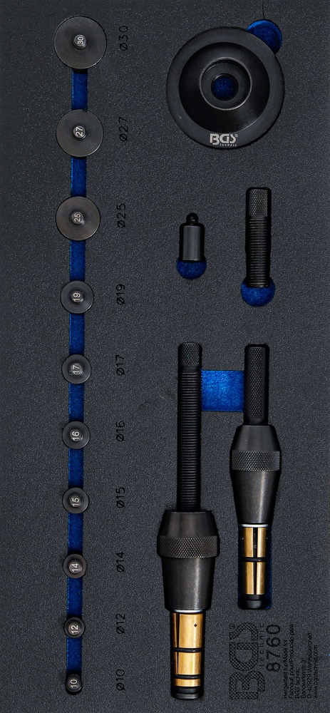 - 10 pilotné adaptéry s Ø 10 – 12 – 14 – 15 – 16 – 17 – 19 – 25 – 27 – 30 mm, pre spojky s vodiacim ložiskom
