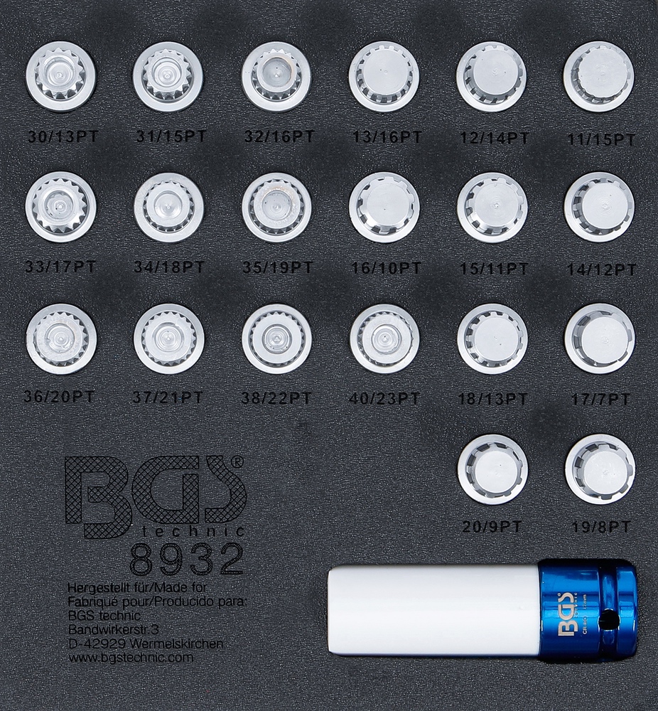 Modul 1/6 – hlavice na skrutky ráfika pre BMW, 21 dielov, BGS 8932