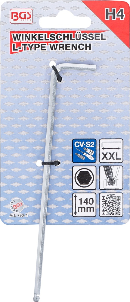 Kľúč L, extra dlhý, imbus / imbus s guľou 4 mm, oceľ S2, BGS 790-4