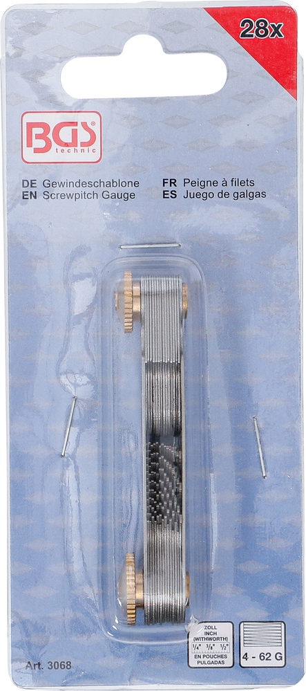 Mierka závitová, 28 plátkov, whitworth 4G – 62G, BGS 3068